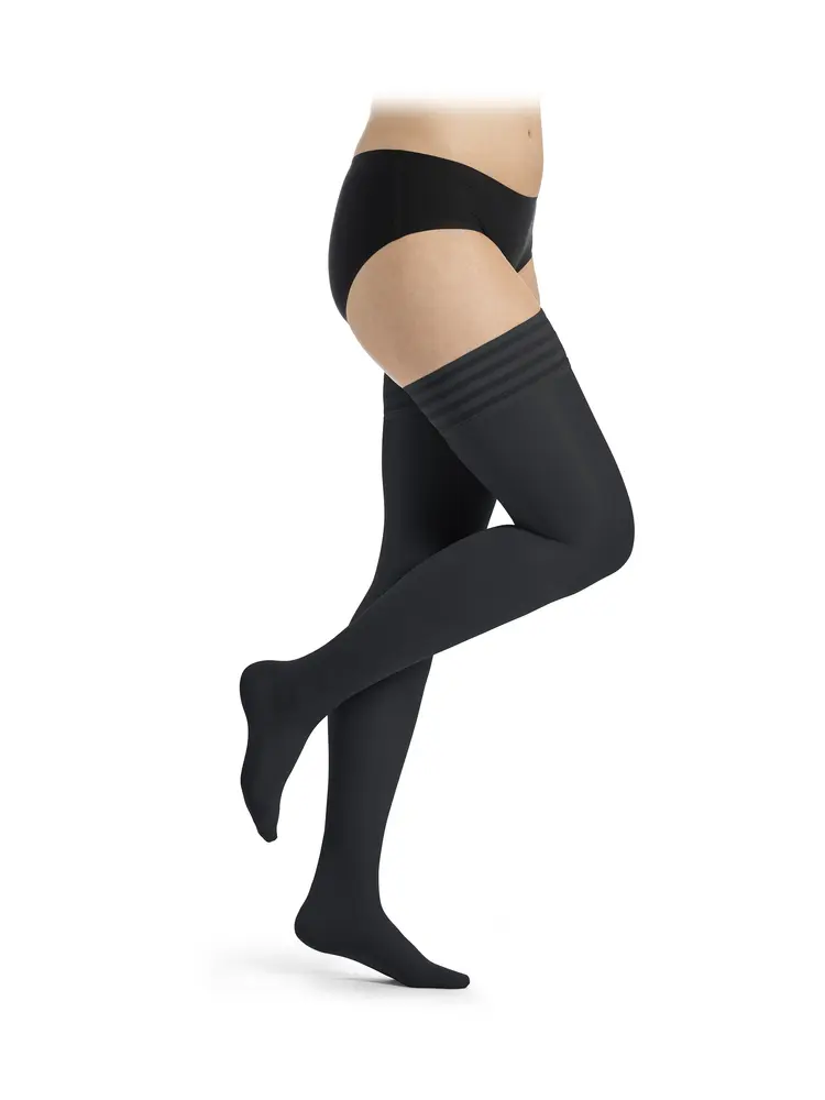De Sigvaris Delilah Stay Ups 140 denier is een comfortabele en modieuze stay up compressie pantykous met siliconenboord. Deze compressie pantykousen stimuleren de bloedsomloop en geven de benen een elegante uitstraling.