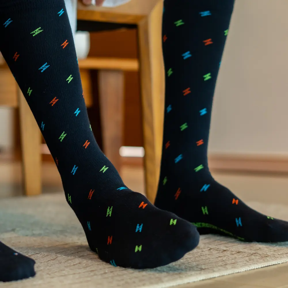 Deze compressiekousen hebben een energieke werking: vrolijk en opvallend, maar tegelijk elegant en draagbaar onder elke outfit.