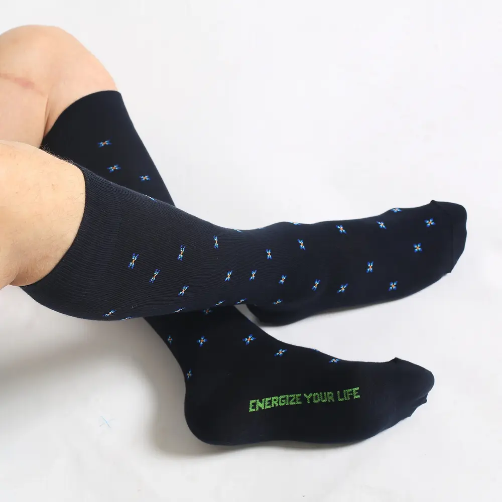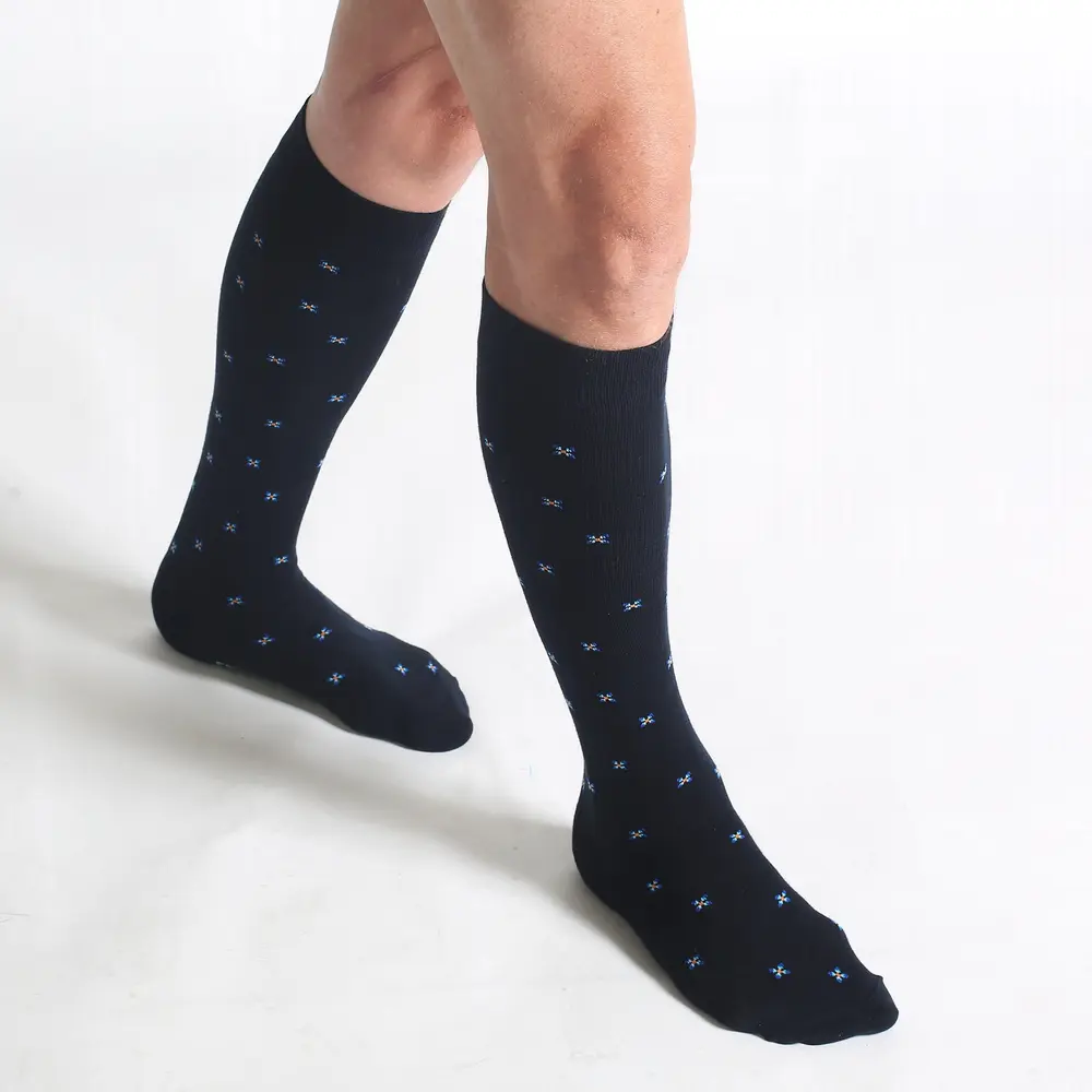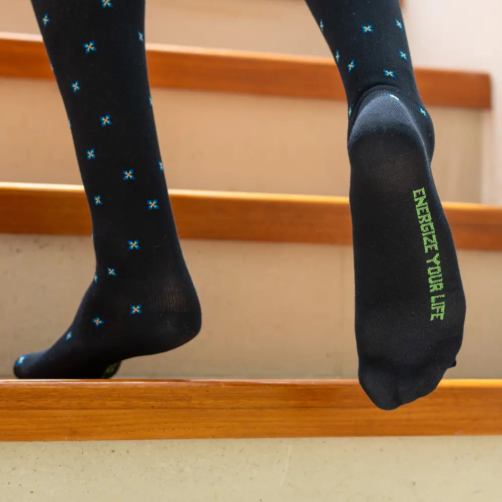 Dankzij de graduele (degressieve) compressie ondersteunen deze kousen de bloedsomloop, helpen ze vermoeidheid te beperken en blijven uw benen langer energiek – met het uiterlijk van een gewone, stijlvolle sok.