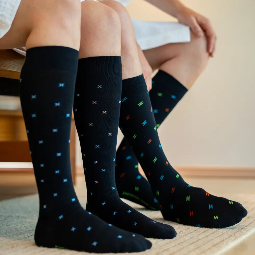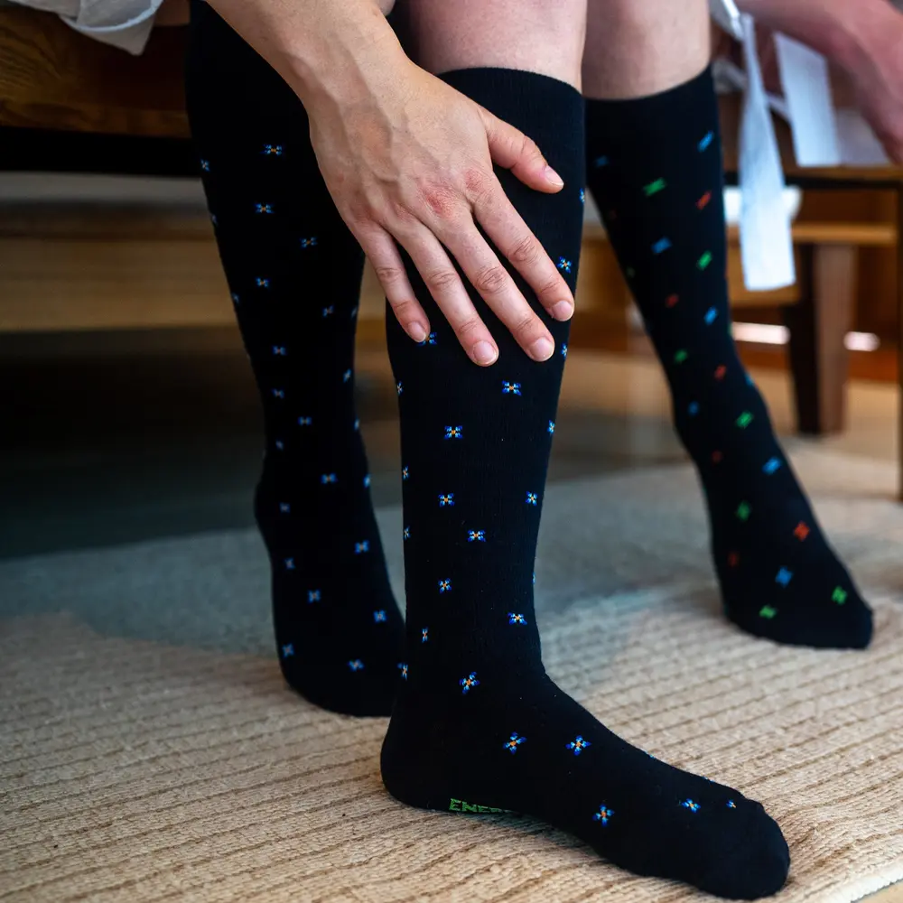 Deze compressiekousen hebben een energieke werking: vrolijk en opvallend, maar tegelijk elegant en draagbaar onder elke outfit.