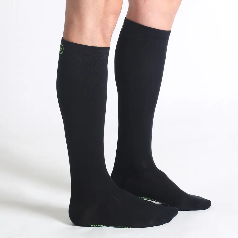 Bij lang zitten of staan vertraagt de zwaartekracht de terugstroom van bloed en vocht uit de onderbenen. Steve Energy Socks maken gebruik van degressieve compressie: de druk is het hoogst bij de enkel en neemt geleidelijk af richting de knie.